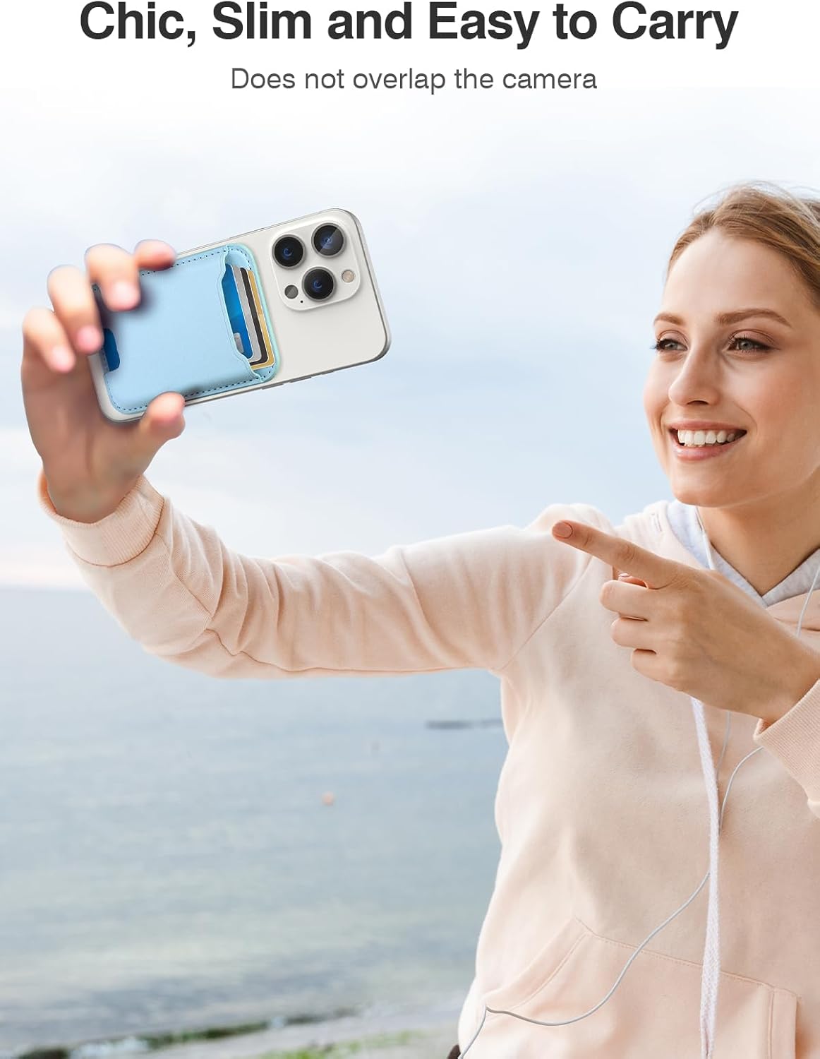 Super Strong Magnetic: The only solution in the market provides an impressive 4.4lbs magnetic force, that allow the magsafe wallet to effortlessly snap into place on the back of your Phone; No more concerns about complicated installation and iPhone drops