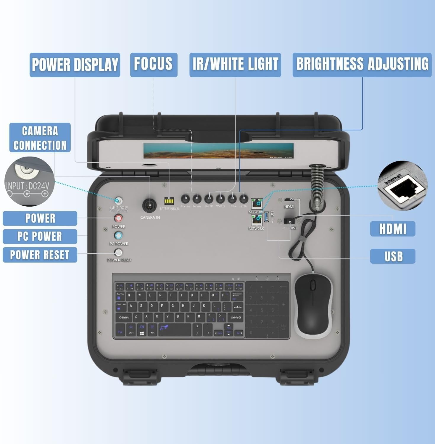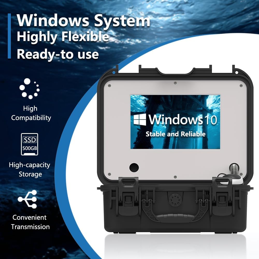 Comprehensive Underwater Inspection Kit:The underwater camera is equipped with a portable computer control box with built-in 500GB SSD.Underwater video can be viewed and stored at any time. Capture underwater video data