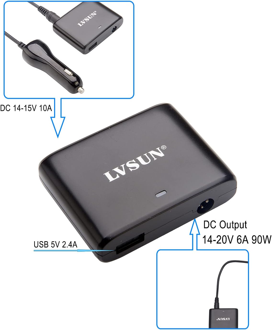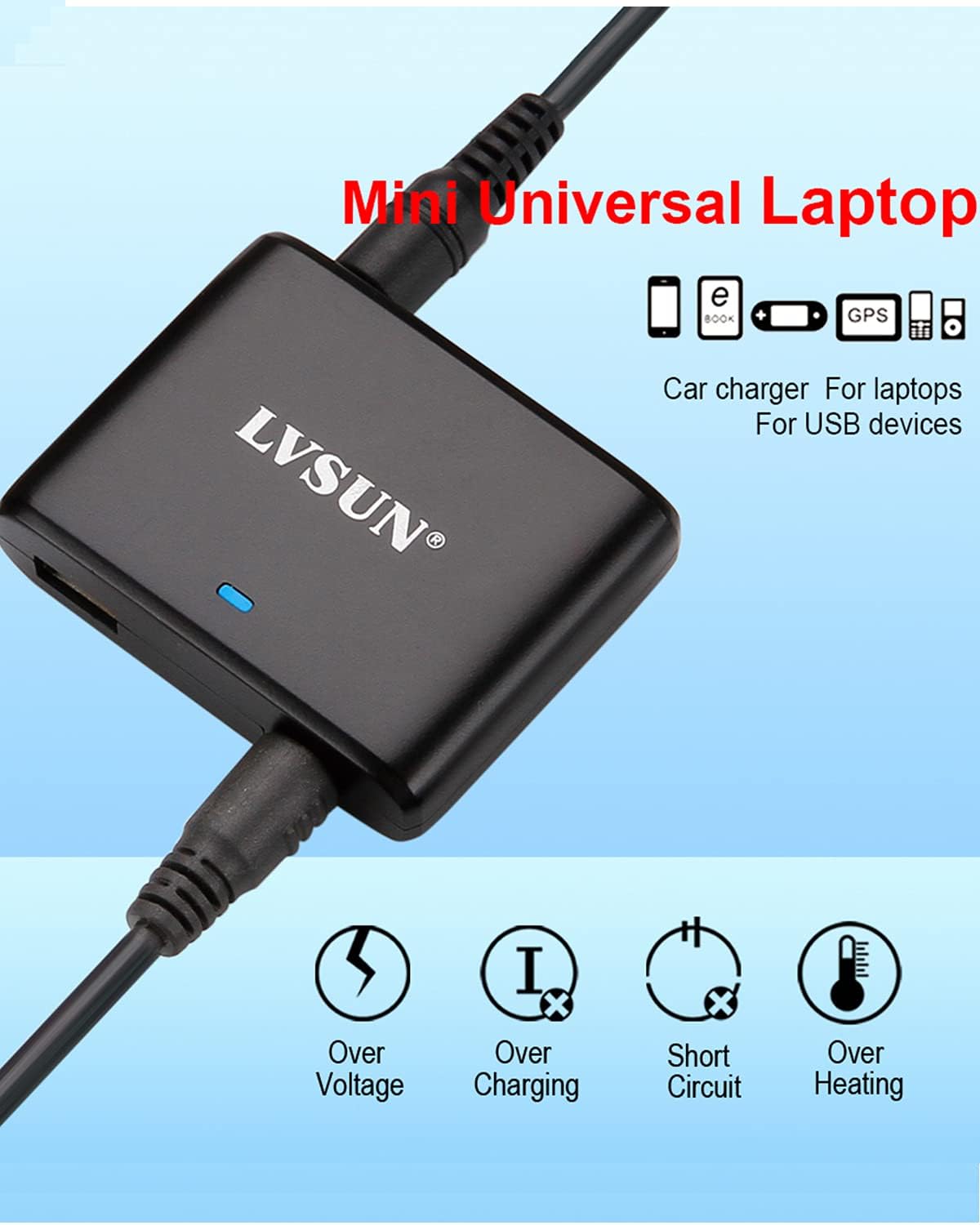 LVSUN Universal Laptop car Charger 90W has overcharge protection, short circuit protection, high temperature protection and surge protection.