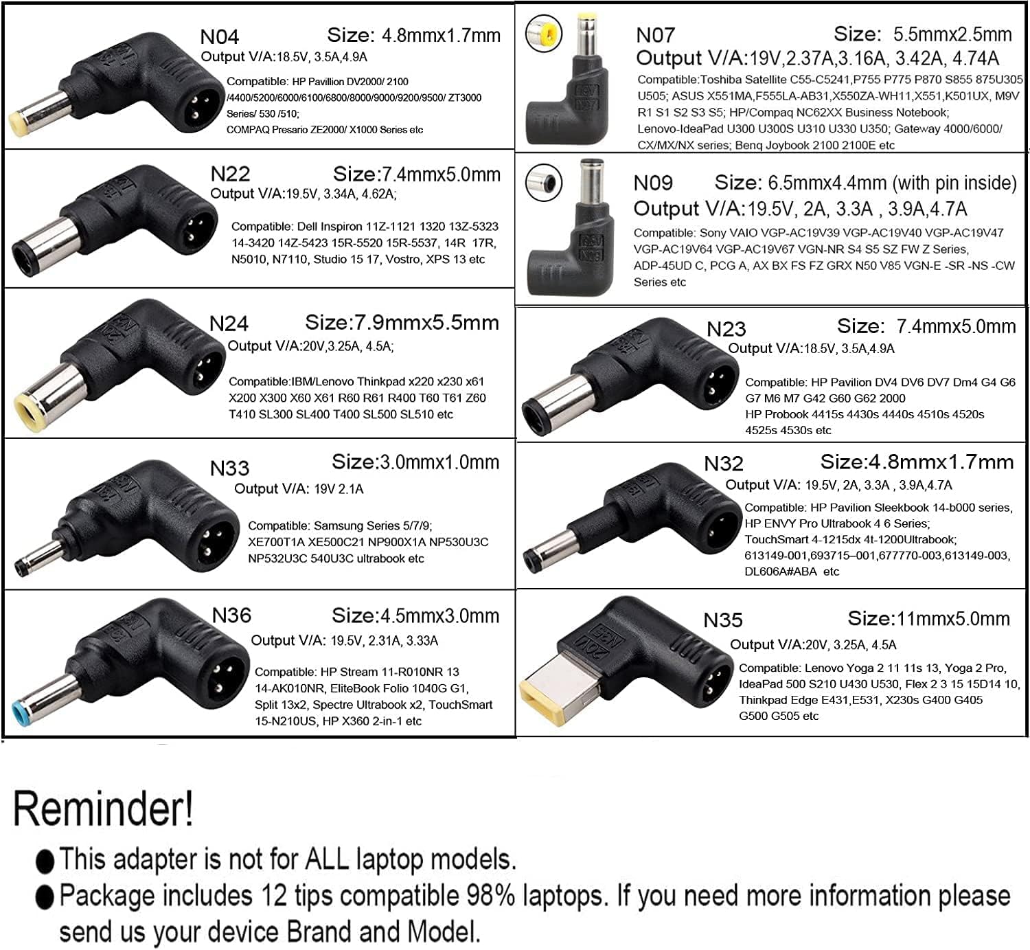 【Multiple Tips】: Please check the DC tips below carefully, we have more than 36 tips but only 10 are available (output: 18.5V 19V 19.5V 20V), if you need other tips, please leave us a message stating that, we will arrange it according to your requirements. Vehicle power supply maximum efficiency of 91%, the actual power of 90W, providing efficient power for your laptop.