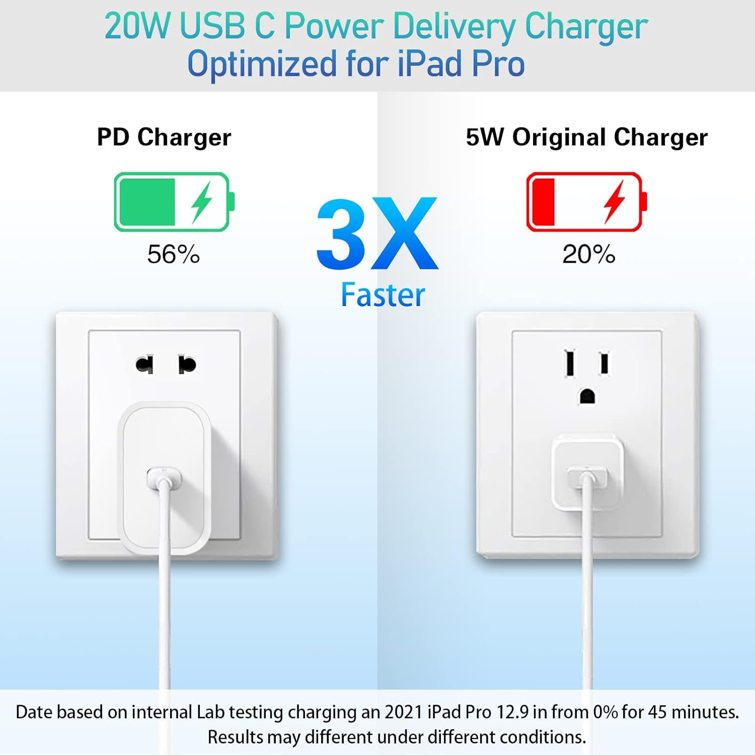 USB-C iPhone Charger Fast Charging: Supports USB Type C Fast Charging. USB-C Power Adapter can charge your new iPhone 15 from 20% to 80% battery in just 60mins, up to 3X faster than original 5W charger. Improve charging efficiency, save your time.