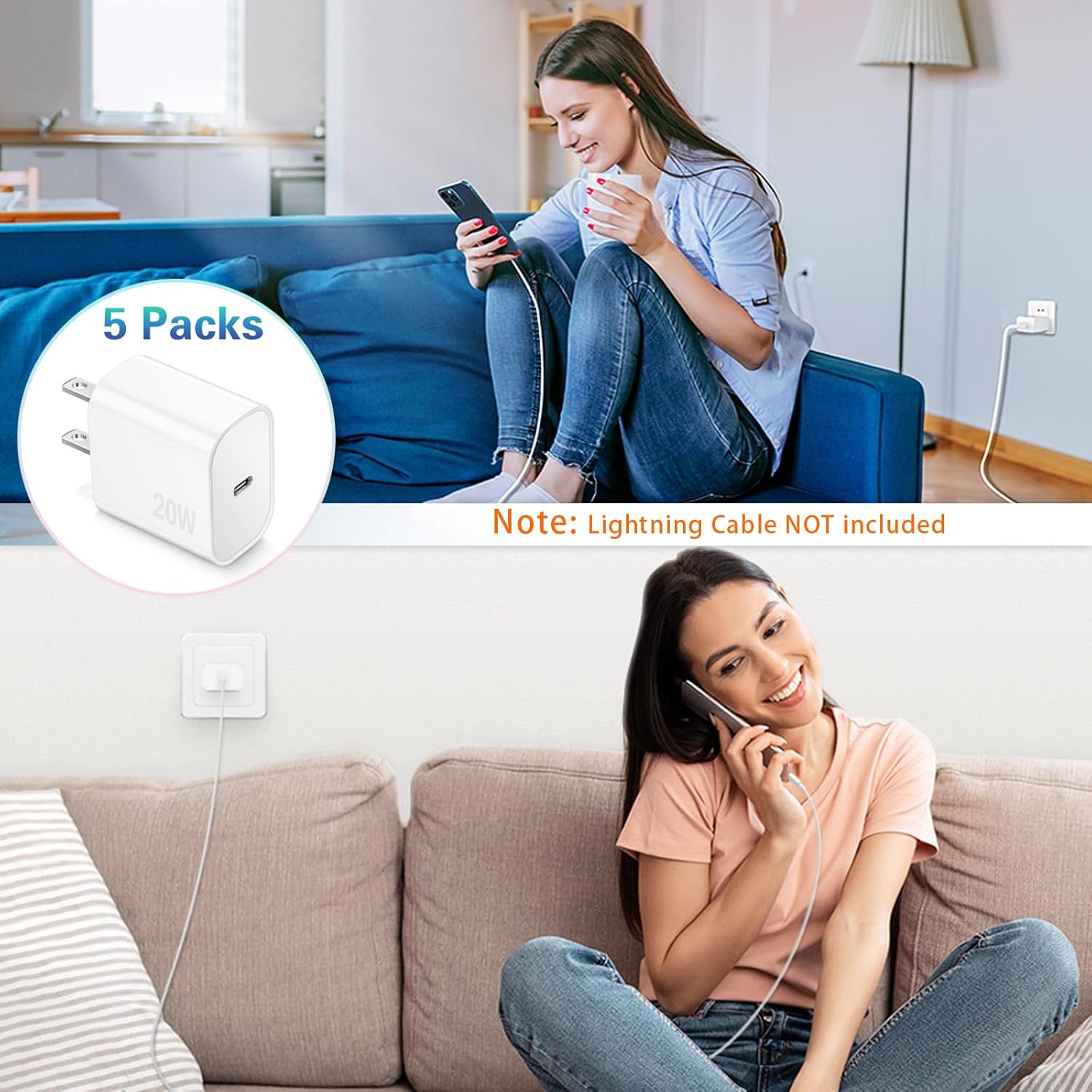 Package Include: 5 x 20W USB-C fast charger adapter (no cable included).
