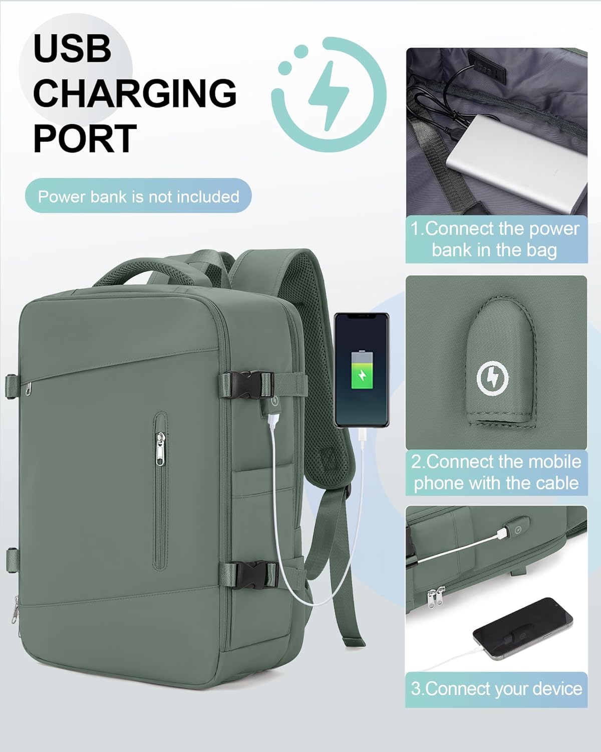 Laptop backpack USB interface: The USB port is configured with a charging cable for conveniently charging your cell phone, iPad, and laptop on the go. Attention: this backpack does not include the power bank itself. The USB charging port provides charging convenience only.