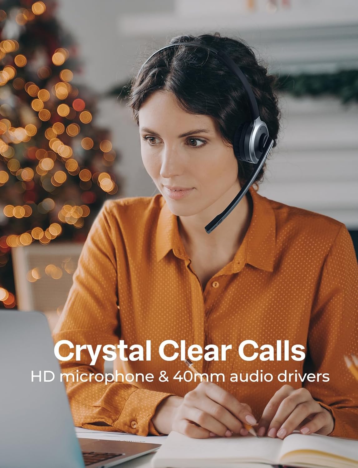 200+ Hours Working Time: Say goodbye to frequent recharges, you’ll get a full 216 hour work time with our Wireless Headset with Microphone for work, that’s enough for weeks of use time; A single charge gives you a full 16 hours of talking/music time, while the charging dock offers up to 200 hours extra playtime when fully charged; You can always stay online and stay productive